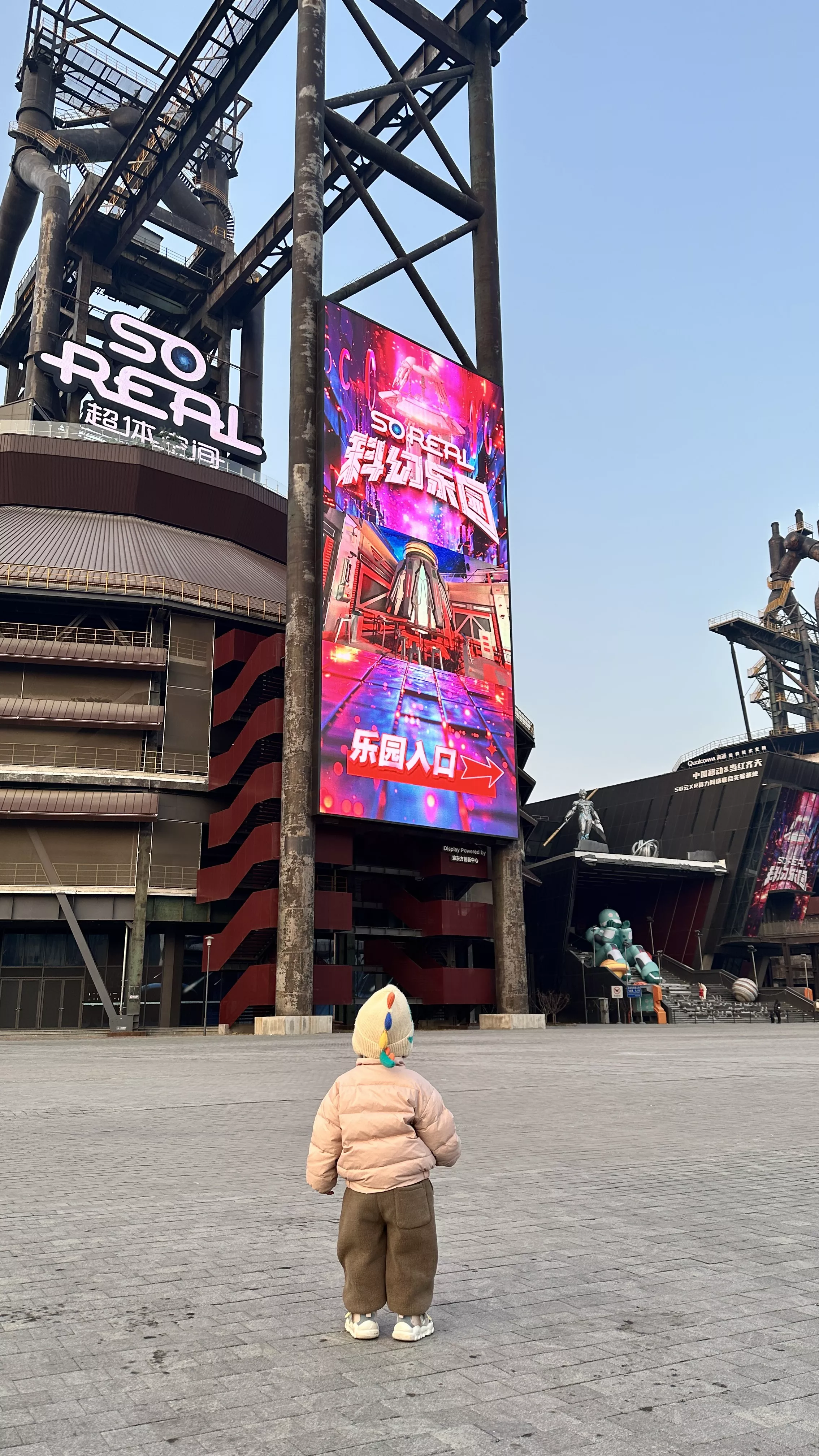 过几天天气不戳,带笑笑去首钢园溜达溜达~,由于我们在家很少让她看电视啥的,所以她一看到屏幕就会停下来