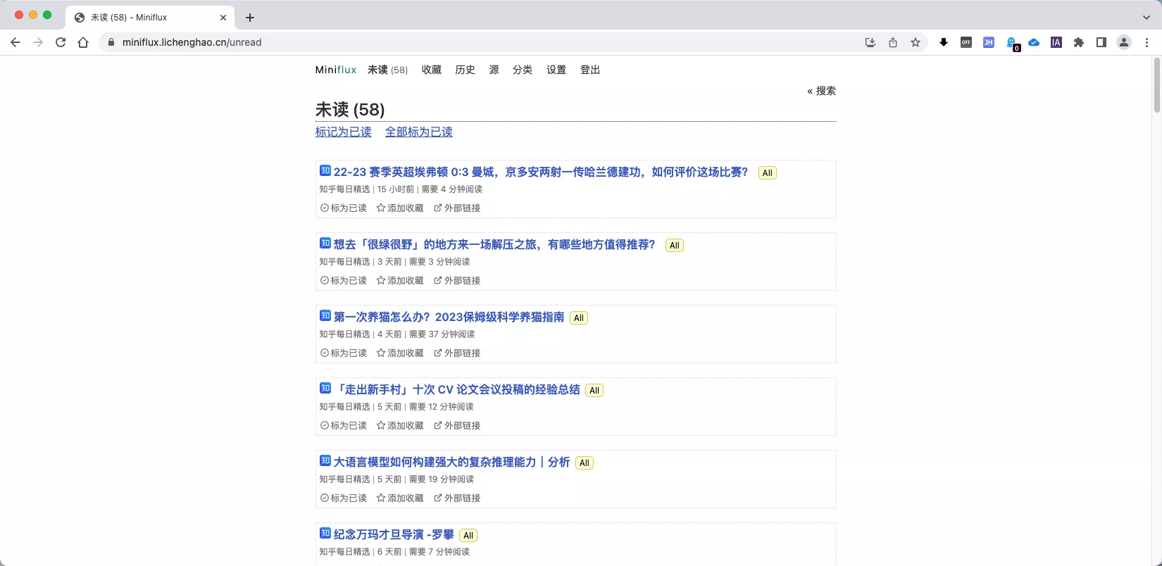 「Miniflux」在线RSS阅读网站,实现多端同步!