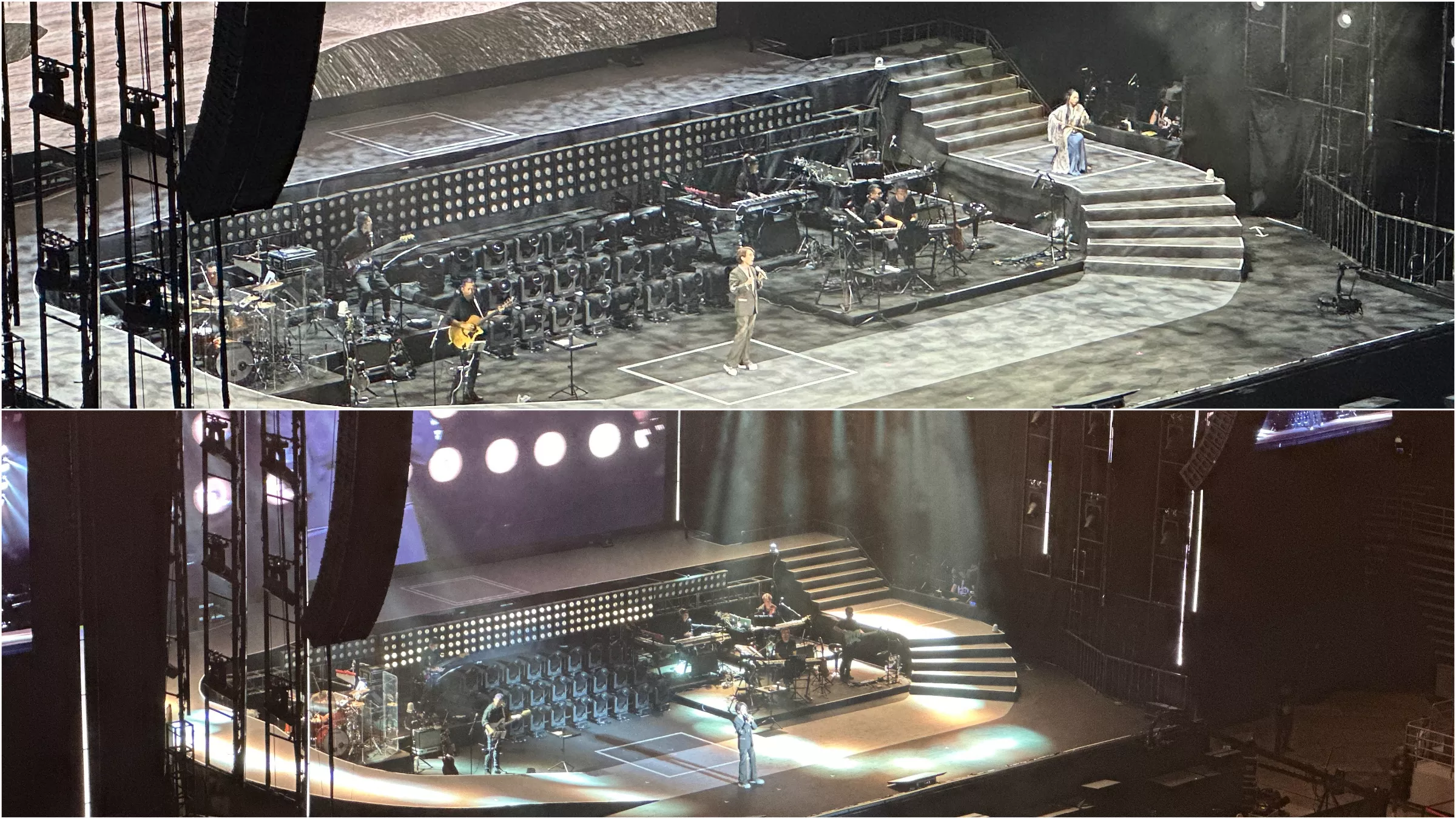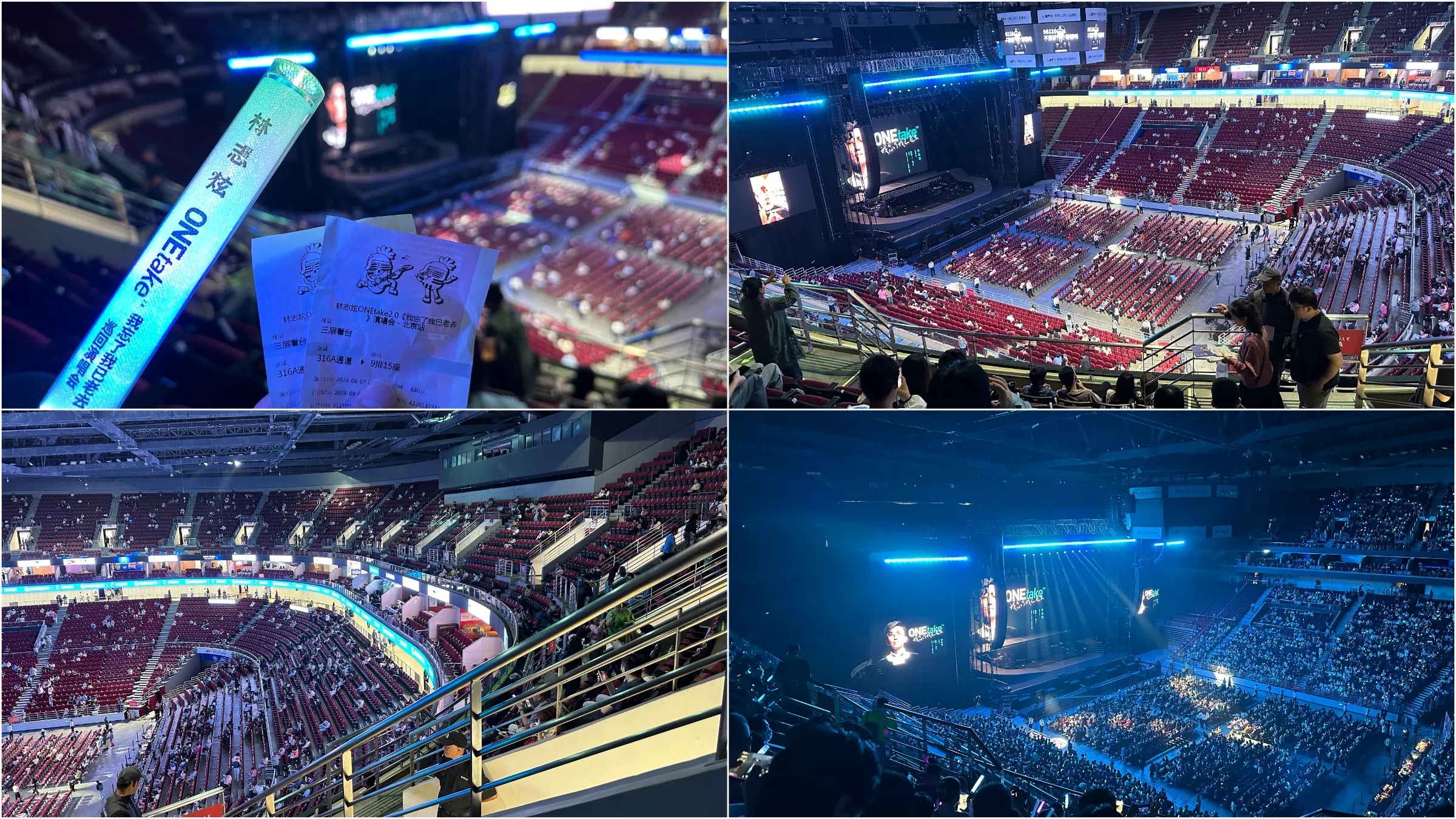 进入后,场子不大,肯定是比鸟巢小很多的,但是视觉效果要比鸟巢好,因为感觉感觉离舞台很近。