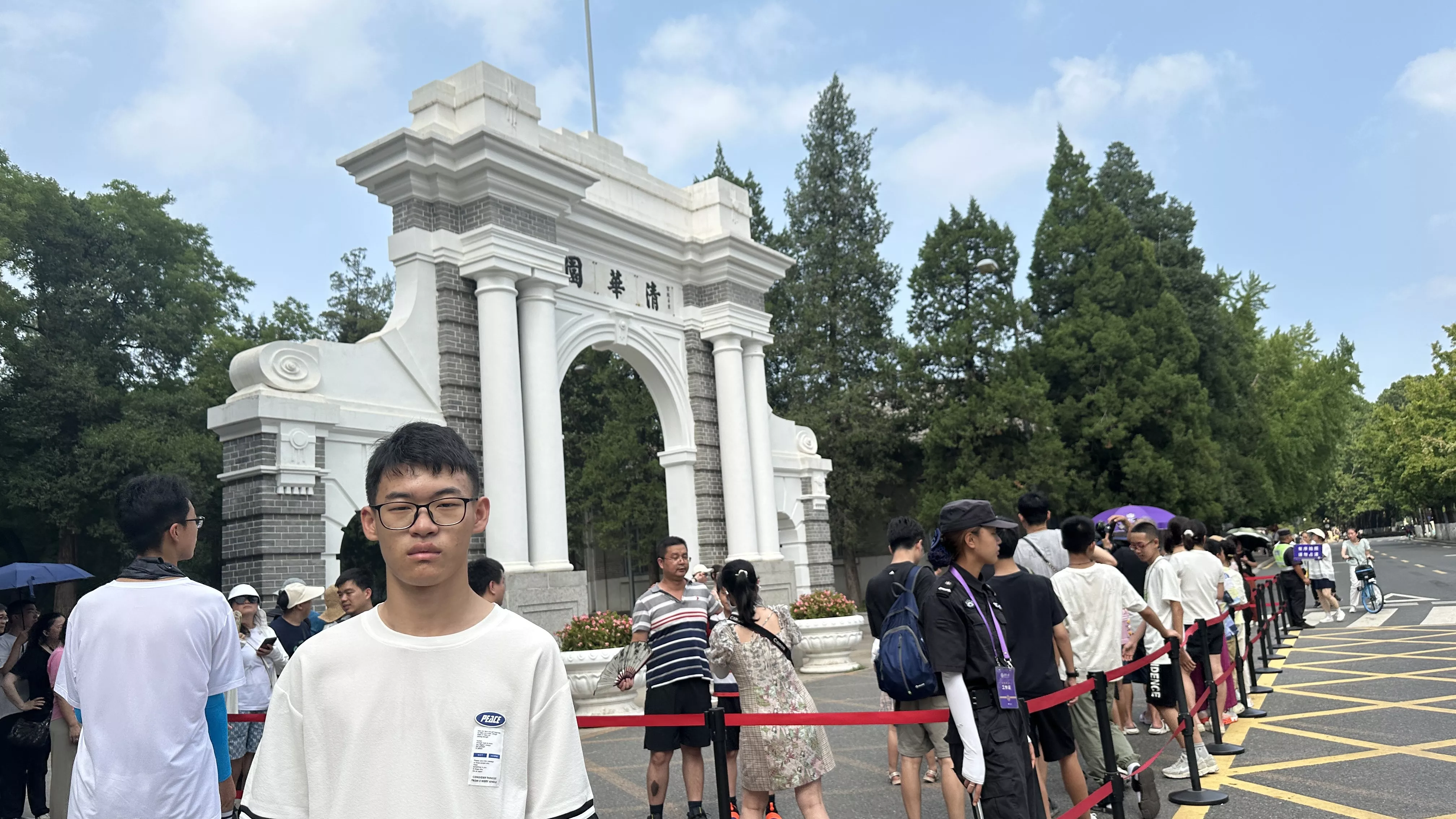 这个时候大概有37度,校园里面的人特别的多,尤其在清华园这拍照的,老长的队伍了,我们在旁边拍了一张。