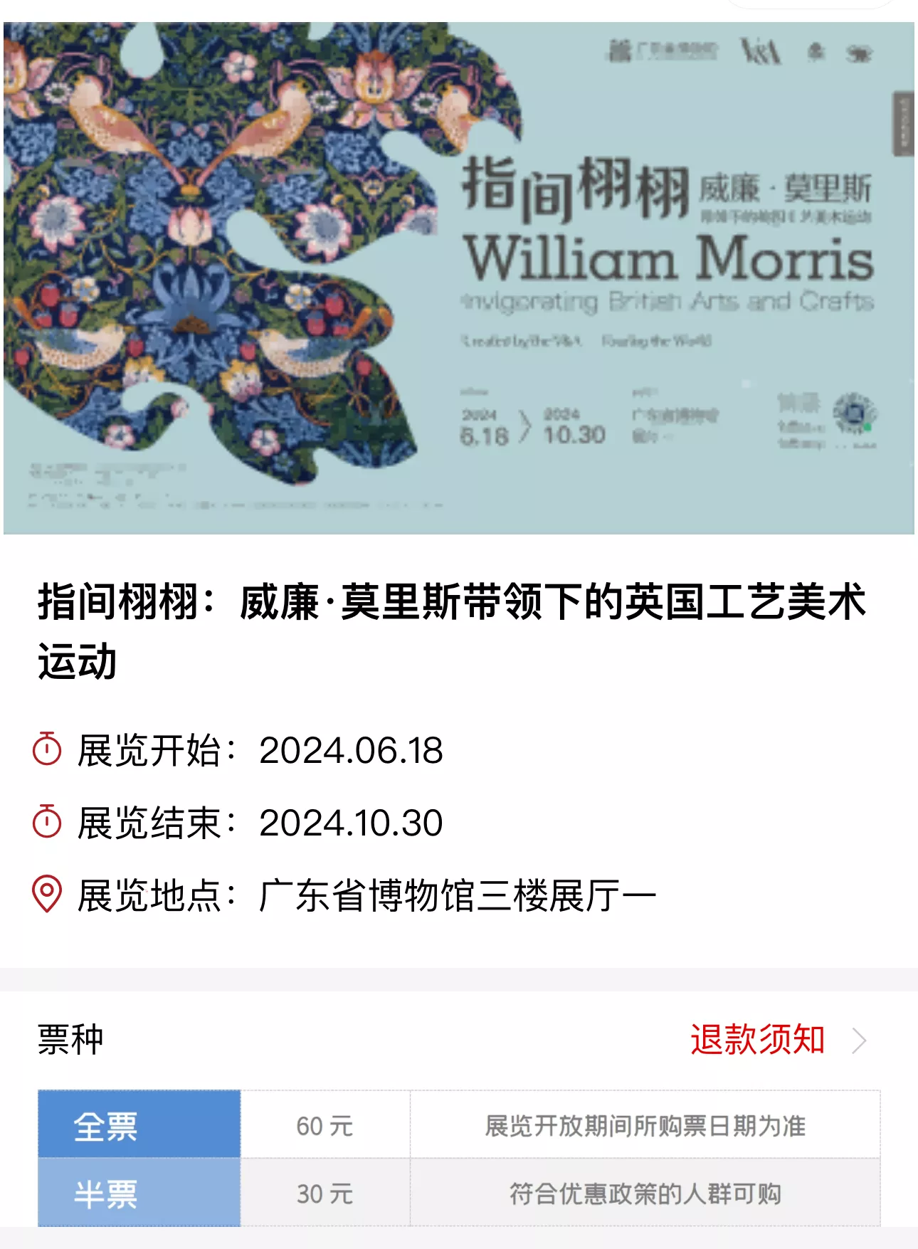 后来网上说,可以预约博物馆的展览“指间栩栩:威廉·莫里斯带领下的英国工艺美术 运动”。
