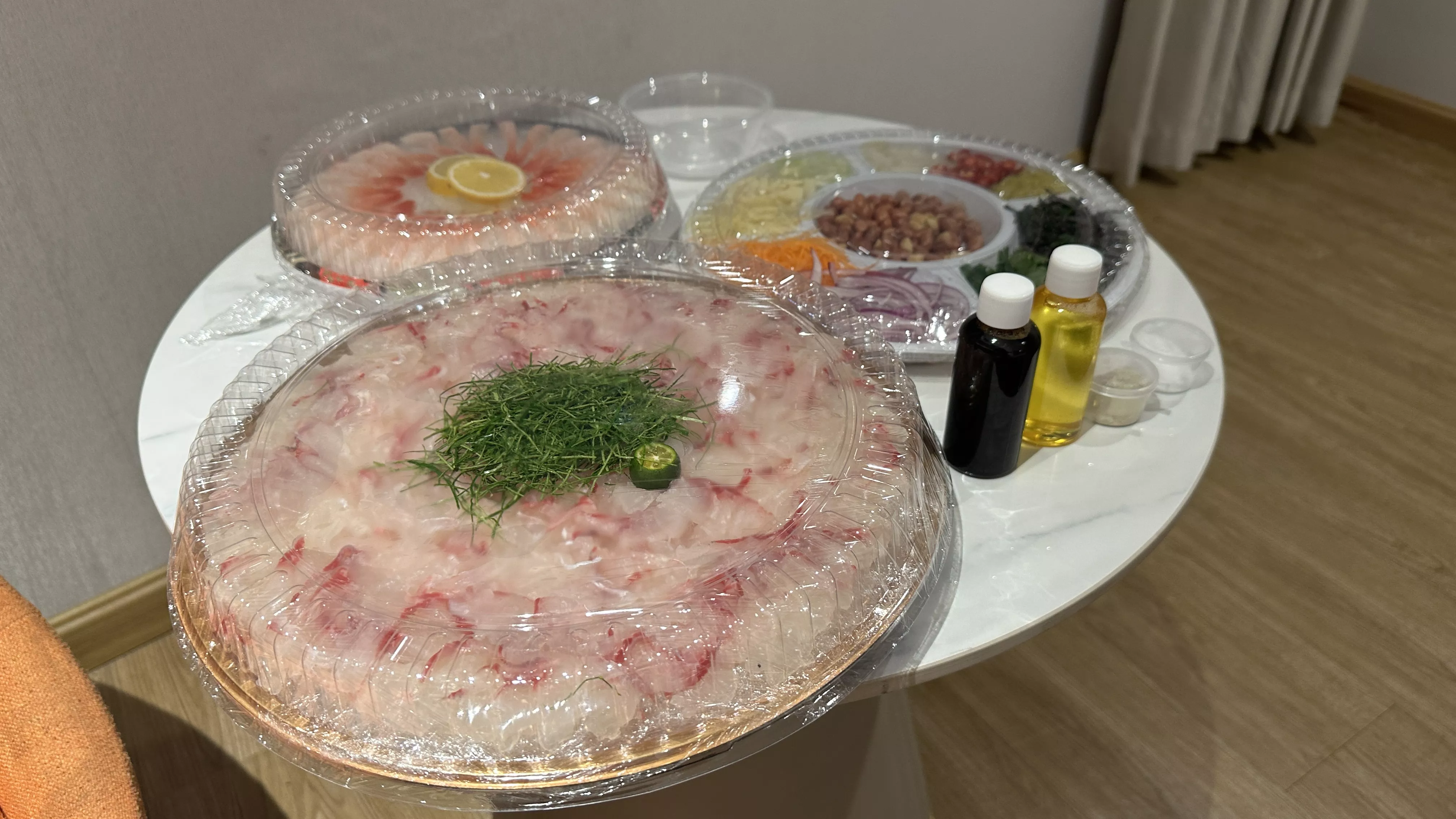 晚上感觉没吃够,又点了些外卖鱼生吃哦~