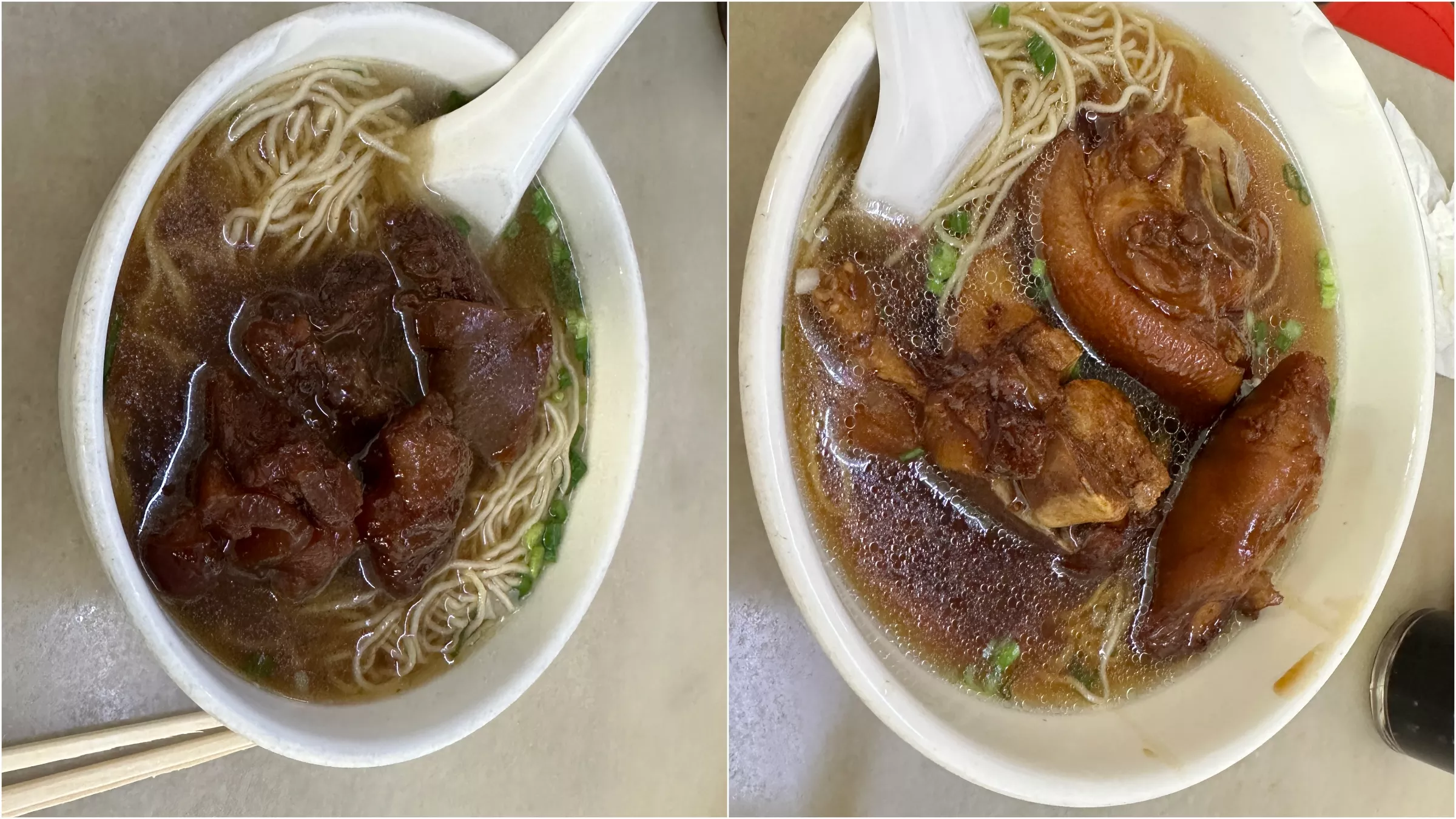 一碗牛腩面,一碗猪脚面,味道挺不错~