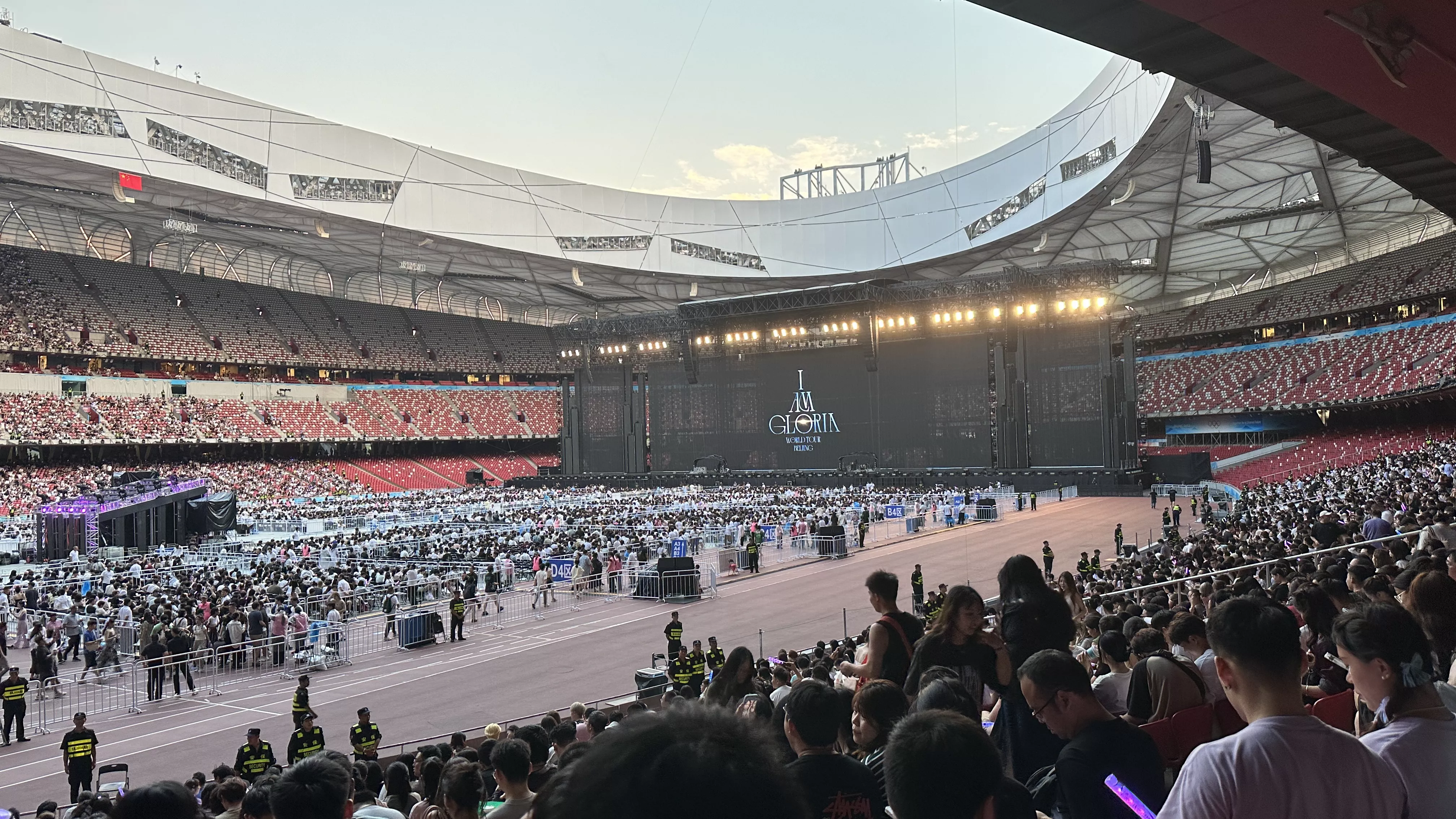 下了地铁后,不用发愁找不到路怎么走,直接跟着大部队走就完事了,中间不断有工作人员指挥你路线,以往我们都是从东门入场,这次下地铁从西门进的,我们的票还是从 K 口入,所以还的从西边走到东边......