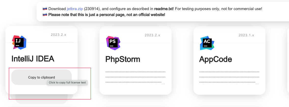第 6 步:然后回到刚刚的进去的下载 jetbra.zip 文件的网站,找到你需要的激活的软件,点击星星的位置,复制激活码。